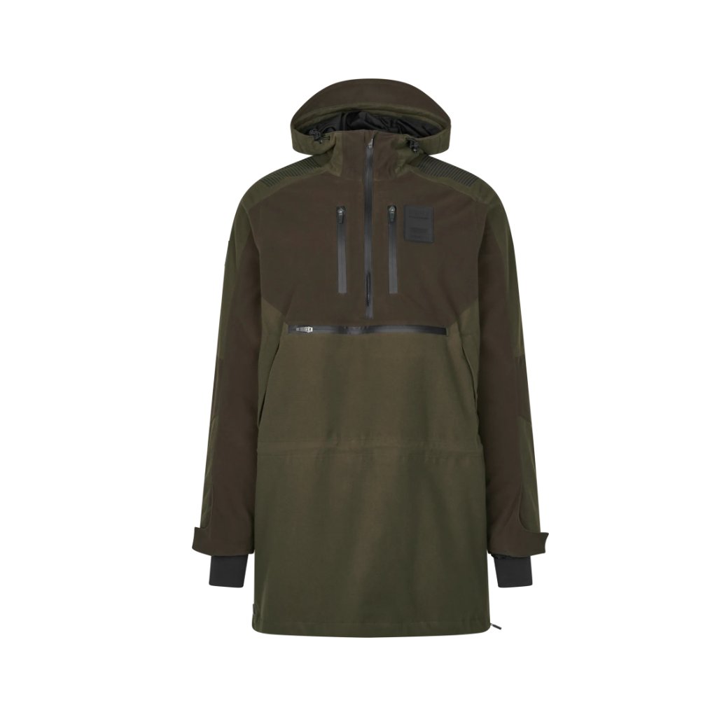 Chaser BGH Smock je vysoce výkonný lovecký oděv navržený ve spolupráci s profesionálním švédským lovcem Hampusem Karlssonem. Vytvořený pro skandinávský lov velké zvěře, poskytuje plnou ochranu proti přírodním živlům při zajištění optimální pohyblivosti. Prodloužená délka a zubatý lem zajišťují vynikající pokrytí, zatímco kartáčovaná tkanina trikot umožňuje tichý pohyb. Je plně vodotěsný s podlepenými švy a vodoodpudivými zipy, má nastavitelné manžety, pevnou kapuci a oboustranné extra dlouhé zipy pro ventilaci. Mnoho kapes, včetně kapes na rádio a kapsy na zvěř, nabízí dostatek úložného prostoru. Tento smock kombinuje odolnost, pohodlí a praktické funkce pro náročné lovy v drsných podmínkách.