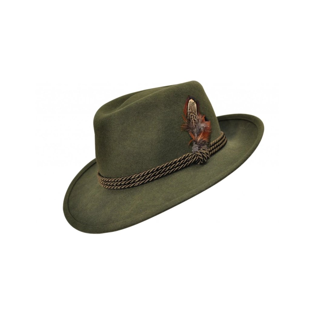 Myslivecký klobouk Alfréd je vyroben ze 100% vlněné plsti, širší krempa je v zadní části zvednutá, klobouk je zdobený jednobarevnou splétanou šňůrou. Zdobeno bažantím pírkem. Textilní potní pásek Werra Hunting.