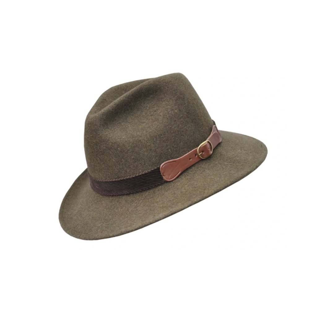 Myslivecký klobouk Arnošt, vyroben ze 100% vlněné plsti, zdobení kombinace tmavě hnědého textilního pásku s kůže, nazdobené kovovou přezkou. Textilní potní pásek Werra Hunting