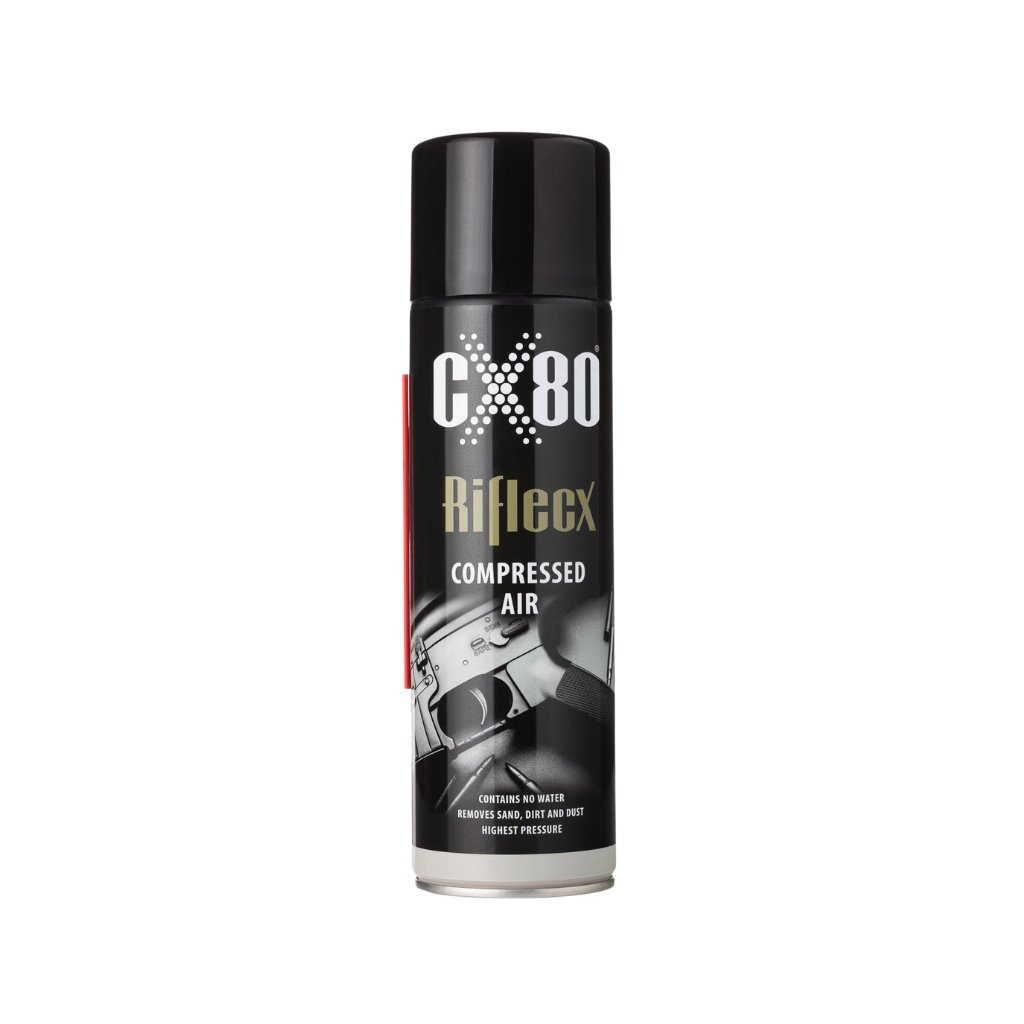 - Optimalizované tlakové parametry: Stlačený vzduch Riflecx je bez obsahu vody a má optimálně nastavený tlak, což je důležité pro zbraně a optické prvky jako kolimátory a dalekohledy.